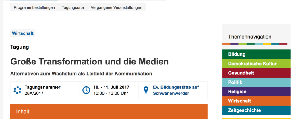 Ein Beitrag im Rahmen des Vortrages zu Grünem Journalismus auf der Konferenz zu Großer Transformation und Medien (10./11.7.2017) von Evangelischer Bildungsstätte und FU Berlin sowie dem Wissenschaftsjournalisten Manfred Ronzheimer.